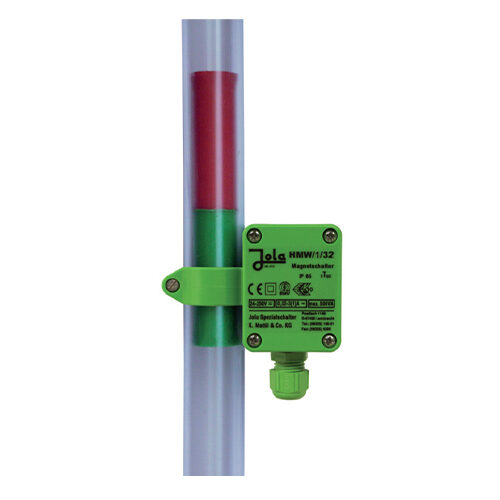 Ces interrupteurs magnétiques consistent en un boîtier pouvant être fixé sur un tube au moyen d’un collier. A l’intérieur du boîtier se trouve une borne de branchement et un microrupteur qui comporte un levier sur lequel est fixé un aimant. Si l’aimant fixé sur le levier du microrupteur est influencé par l’aimant situé à l’intérieur du tube, un changement de la position du levier du microrupteur se produit. Ce changement de position établit une commutation électrique.